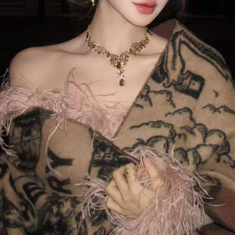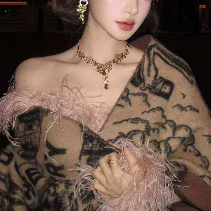 美拉德波西米亚叠戴毛衣项链女棕色复古穿搭choker锁骨链高级配饰