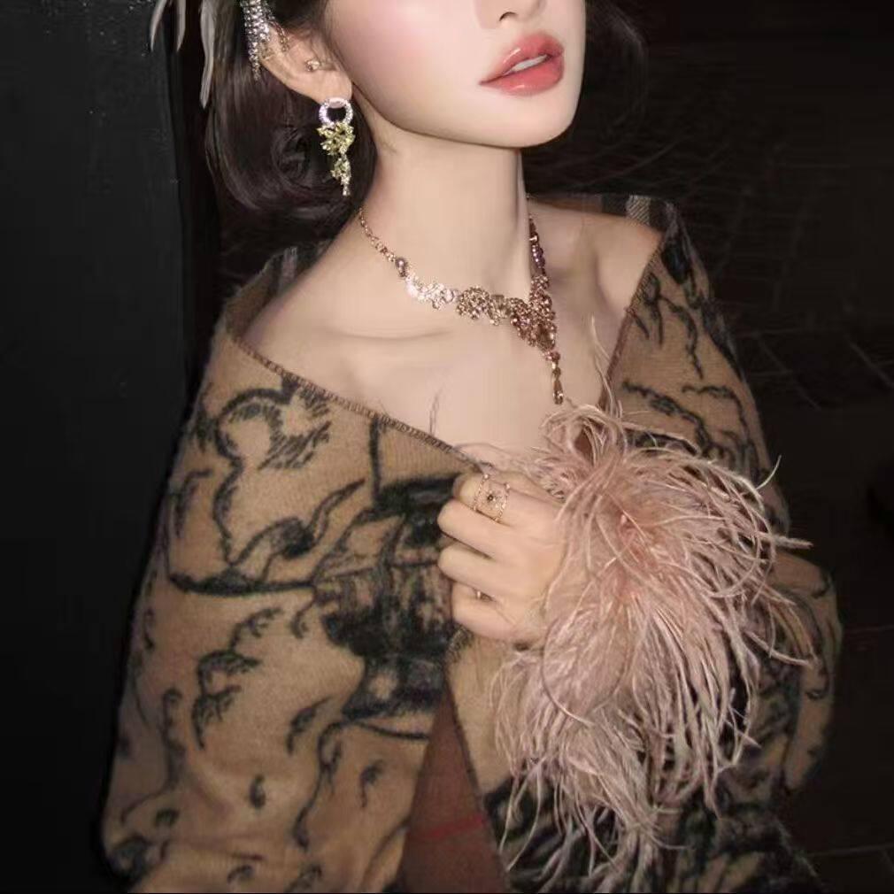 新中式复古长款羽毛项链女民族风高级装饰毛衣链波西米亚吊坠配饰