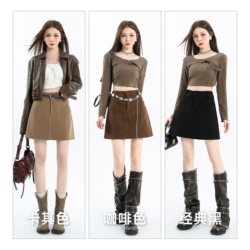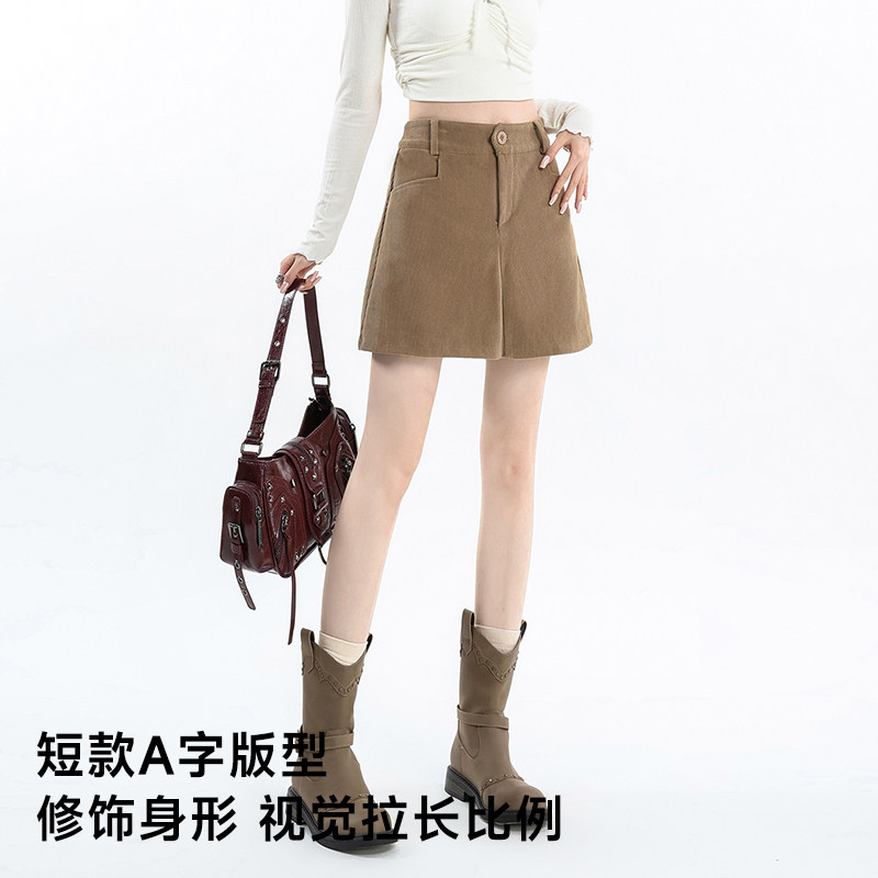 唐狮半身裙女2026新款秋冬季流行美拉德色高腰显瘦灯芯绒短裙VB