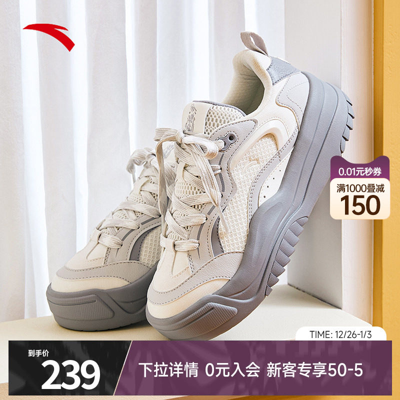 安踏元年丨板鞋女鞋冬季舒适厚底增高小白鞋轻便休闲鞋百搭运动鞋