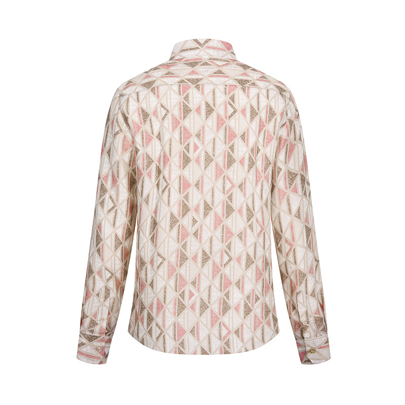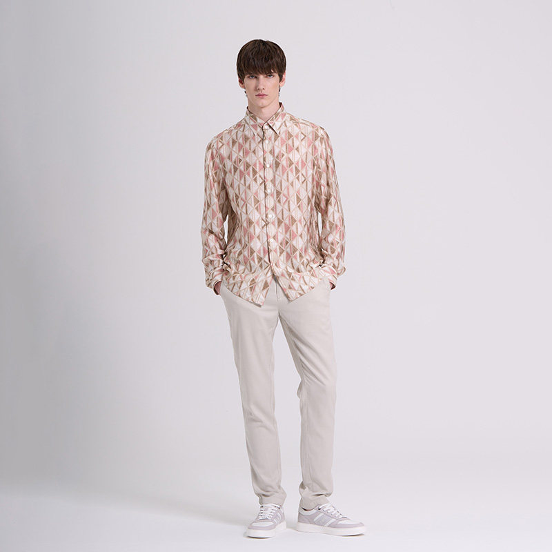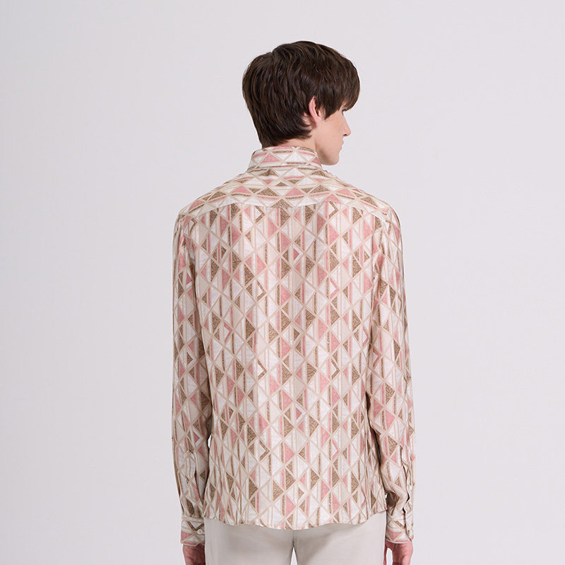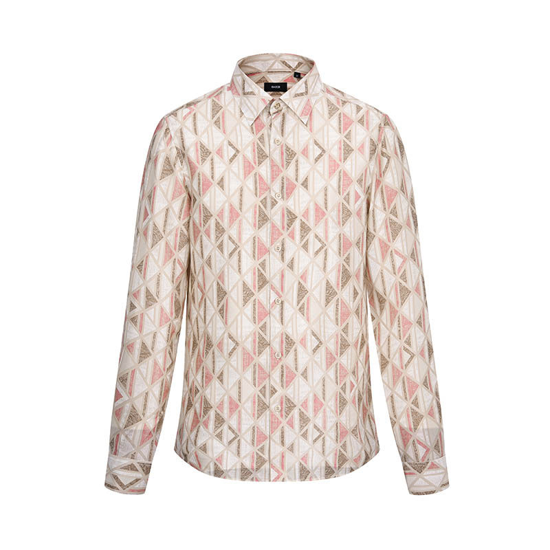 RARE威雅男装 秋冬新款几何提花粉色真丝长袖衬衫男