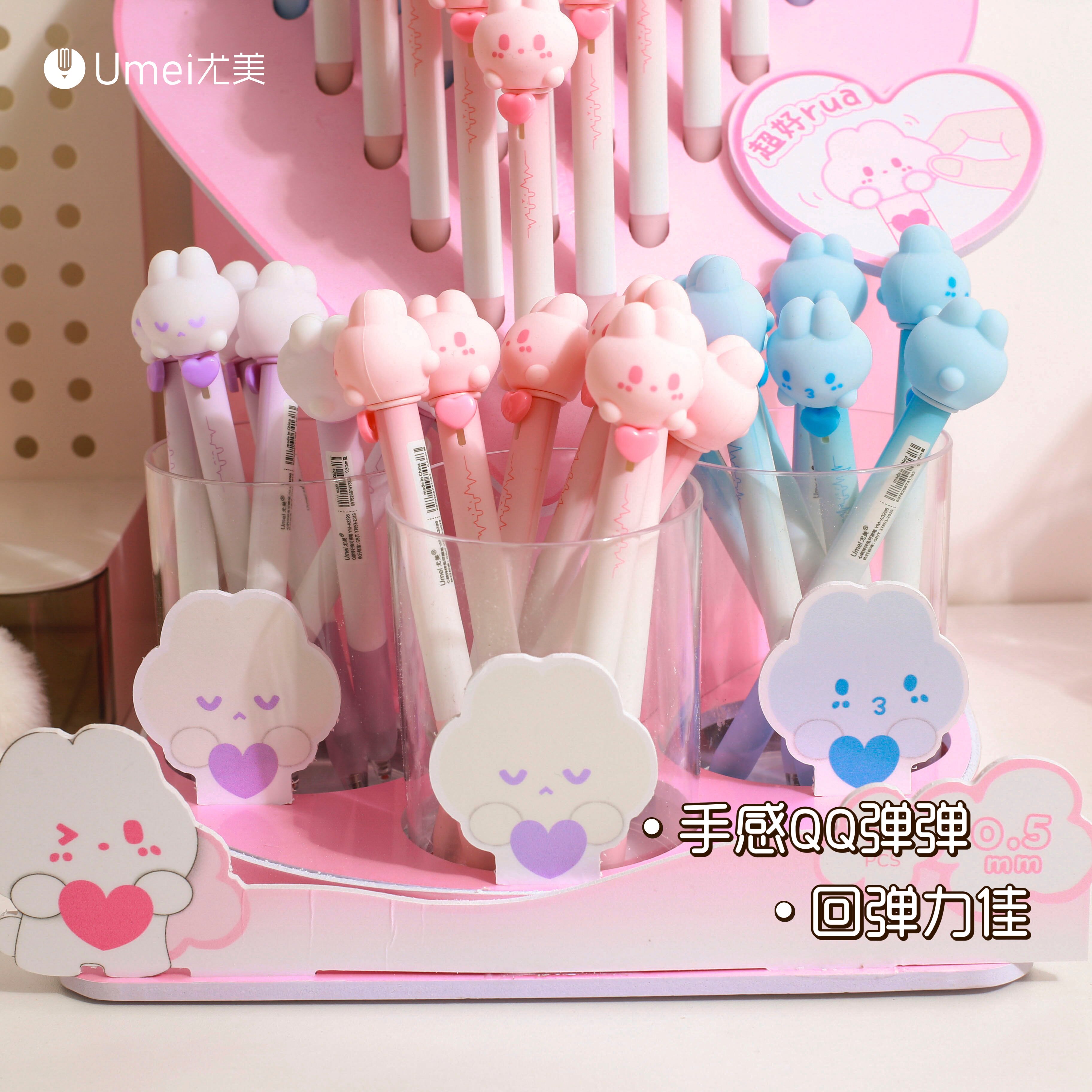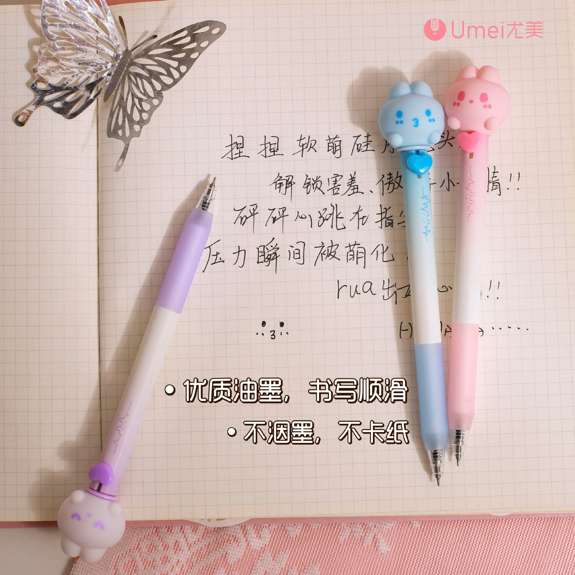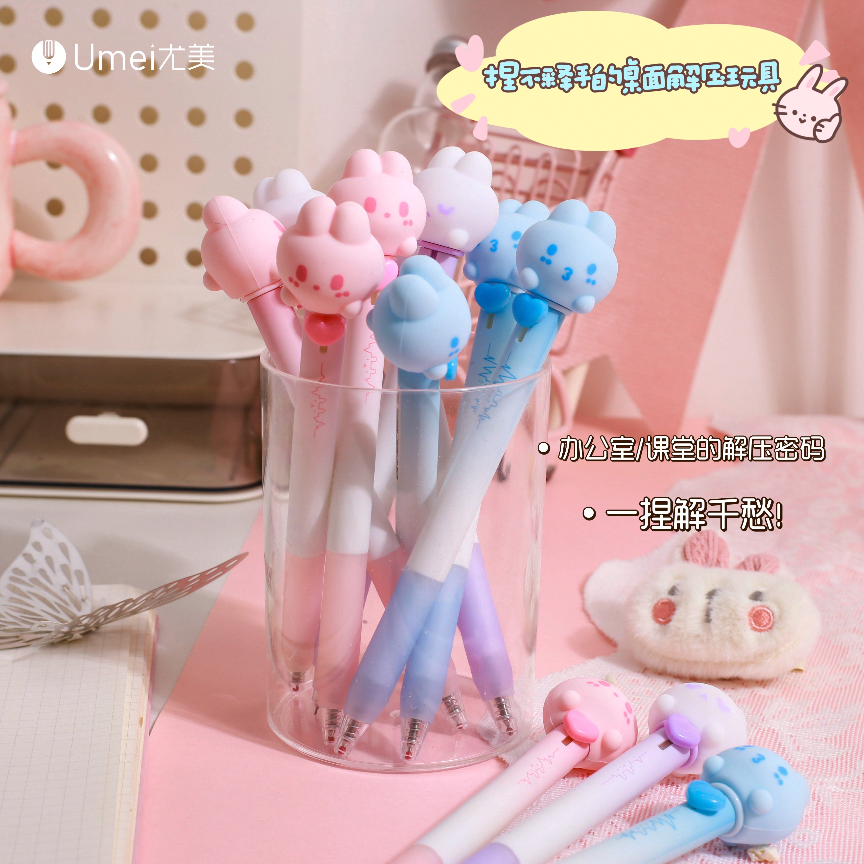 尤美心跳兔兔解压按动笔高颜值硅胶捏捏减压中性笔速干顺滑刷题笔学生专用刷题笔三年级黑色速干水笔CS头笔芯