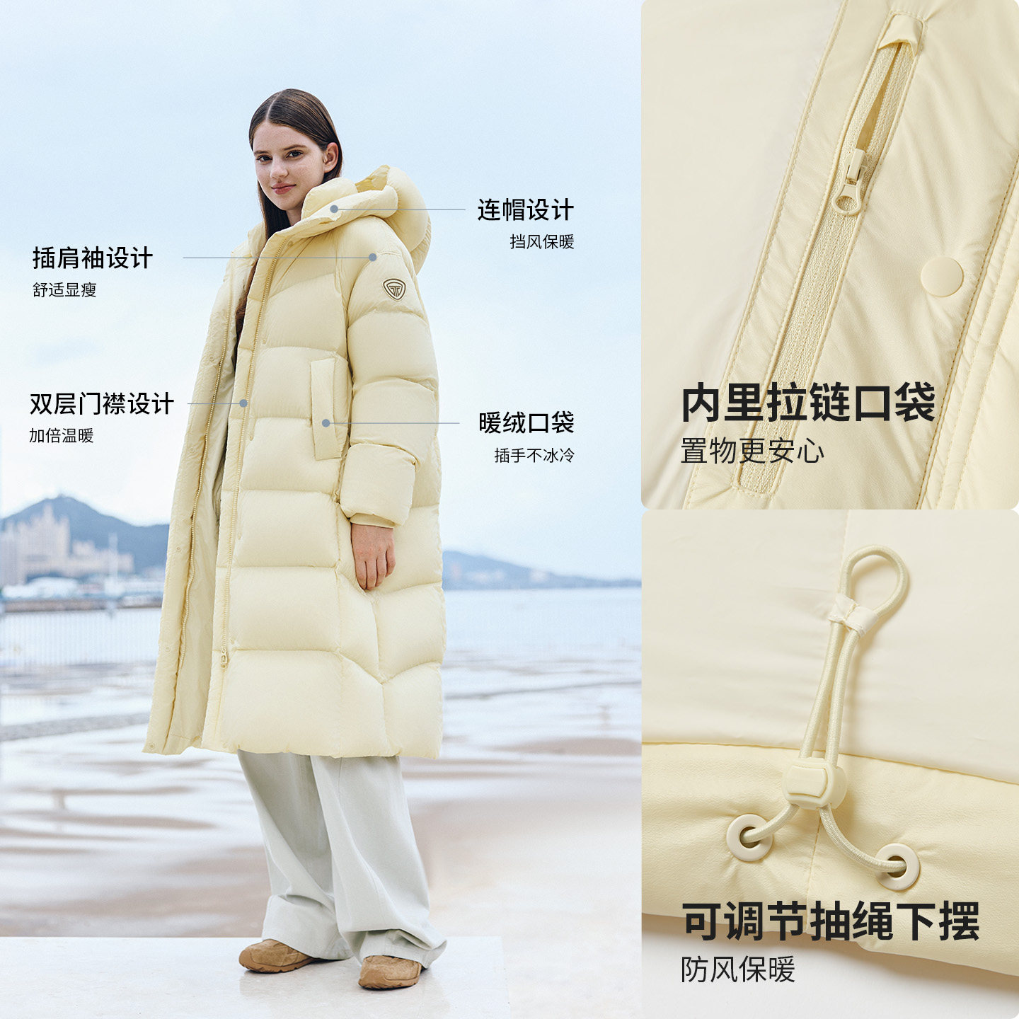 鸭鸭中戏pro羽绒服女冬季反季中长款羽绒服过膝加厚95绒波兰鸭绒J