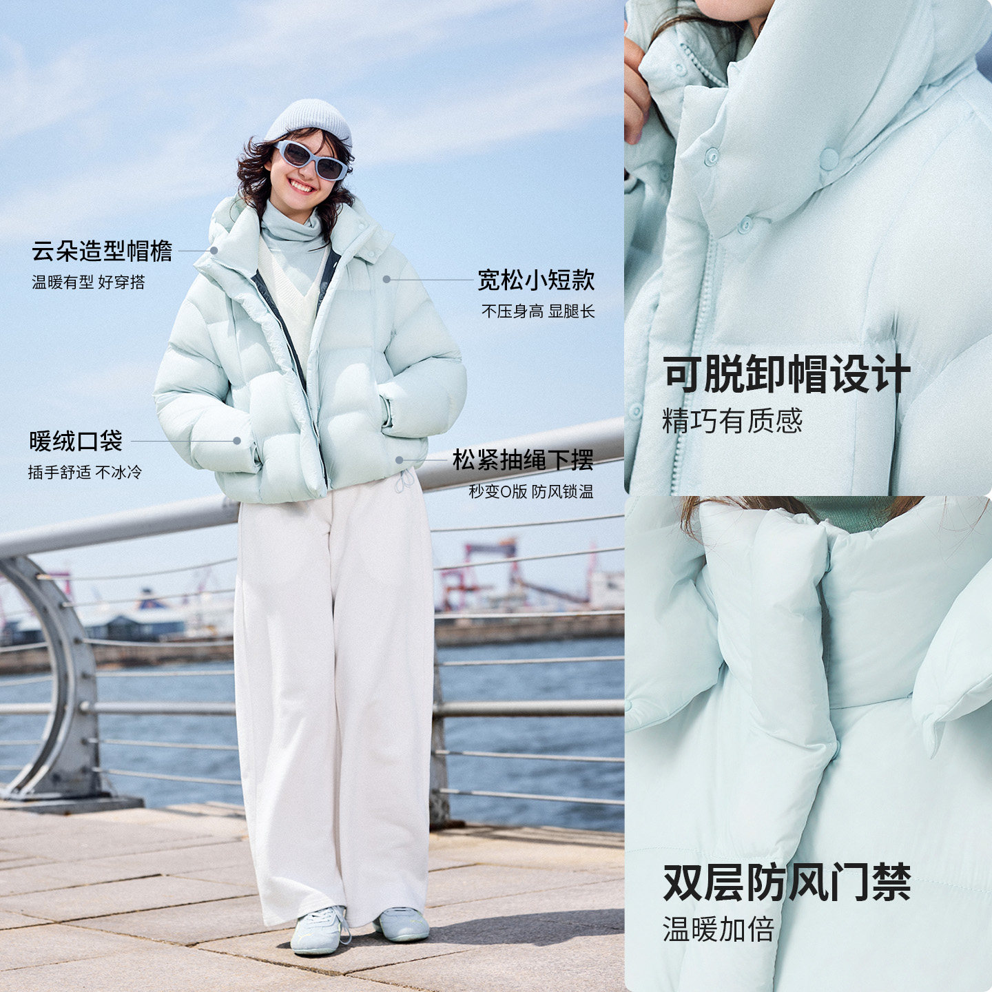 鸭鸭2025秋冬新款立领短款羽绒服小个子女冬多巴胺连帽可拆帽外套