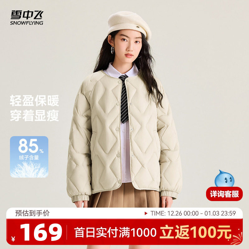 雪中飞25冬女士菱格圆领羽绒服外套时尚居家休闲无领日系休闲
