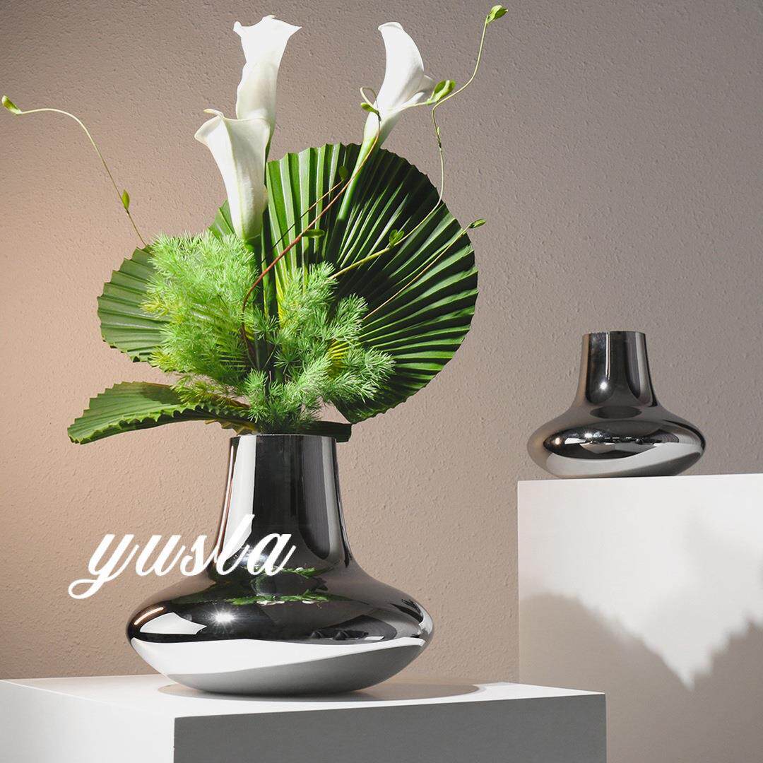 轻奢玻璃插干花瓶花器摆件样板间客厅餐厅茶几餐吧台软装饰品家居