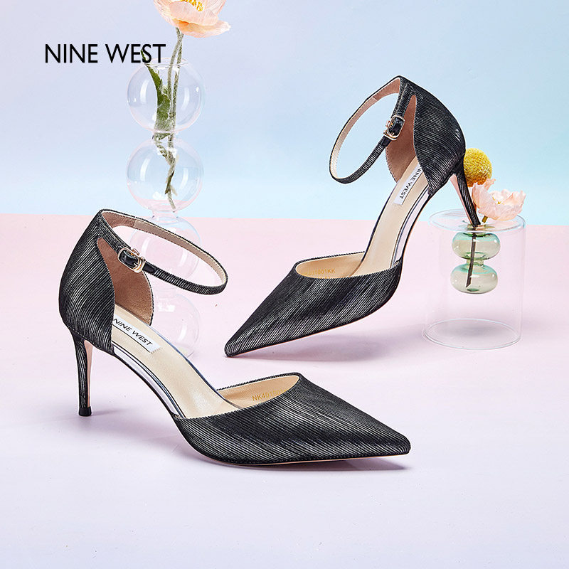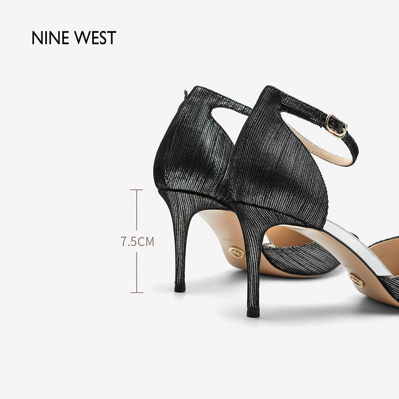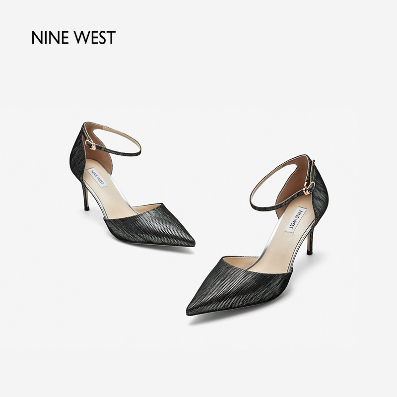 Nine West/玖熙昼夜流光侧空尖头高跟鞋时装凉鞋新款细跟浅口单鞋