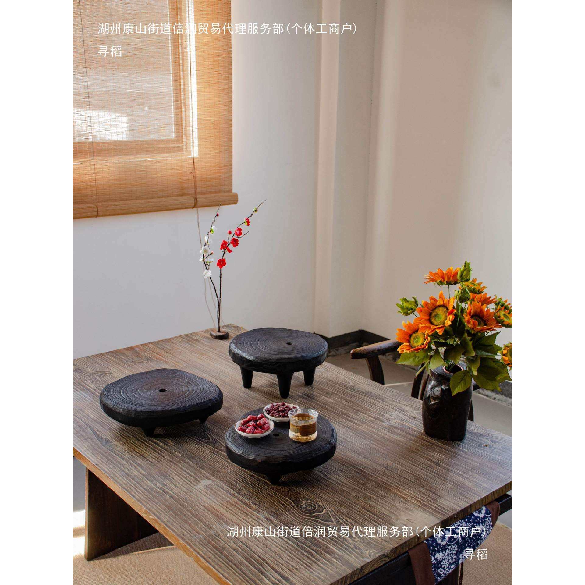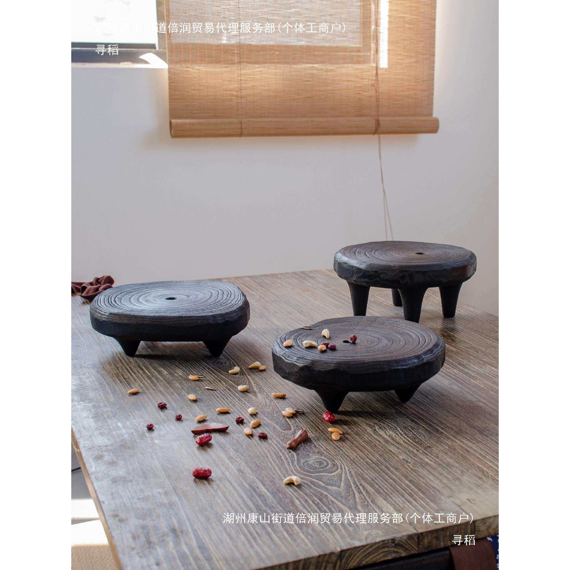 碳化木茶几诧寂风实木花盆底座黑色木墩盆景托盘感软装家居