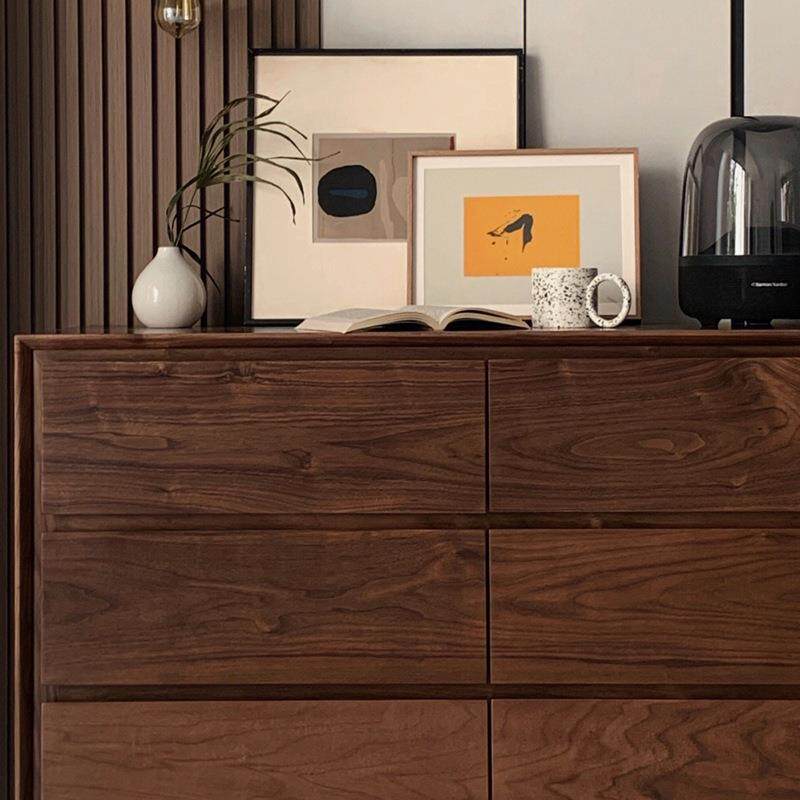 新中式北美黑胡桃木六斗柜宋式美学禅意储物柜酒店装饰柜家具