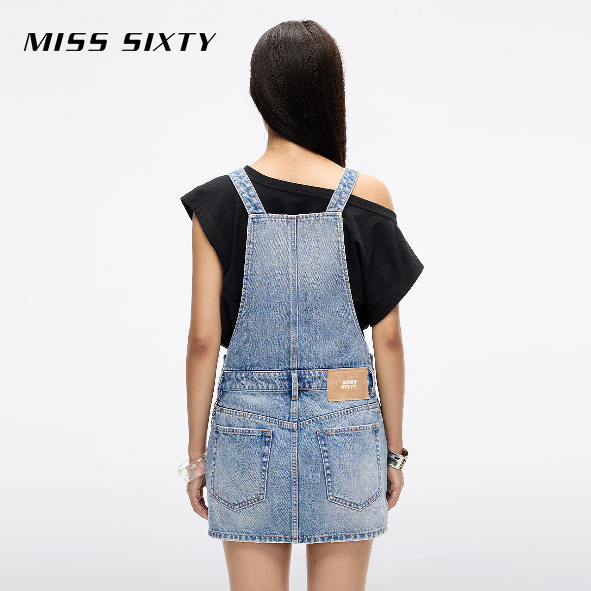 Miss Sixty2025秋季新款牛仔背带连衣裙女复古磨破减龄休闲百搭