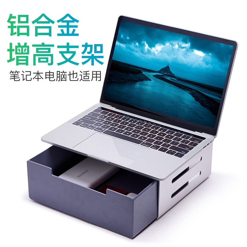 桌面usb显示器增高架台式电脑显示屏幕垫高办公mac支架工位改造置物抽屉收纳铝合金多功能扩展带拓展坞笔记本