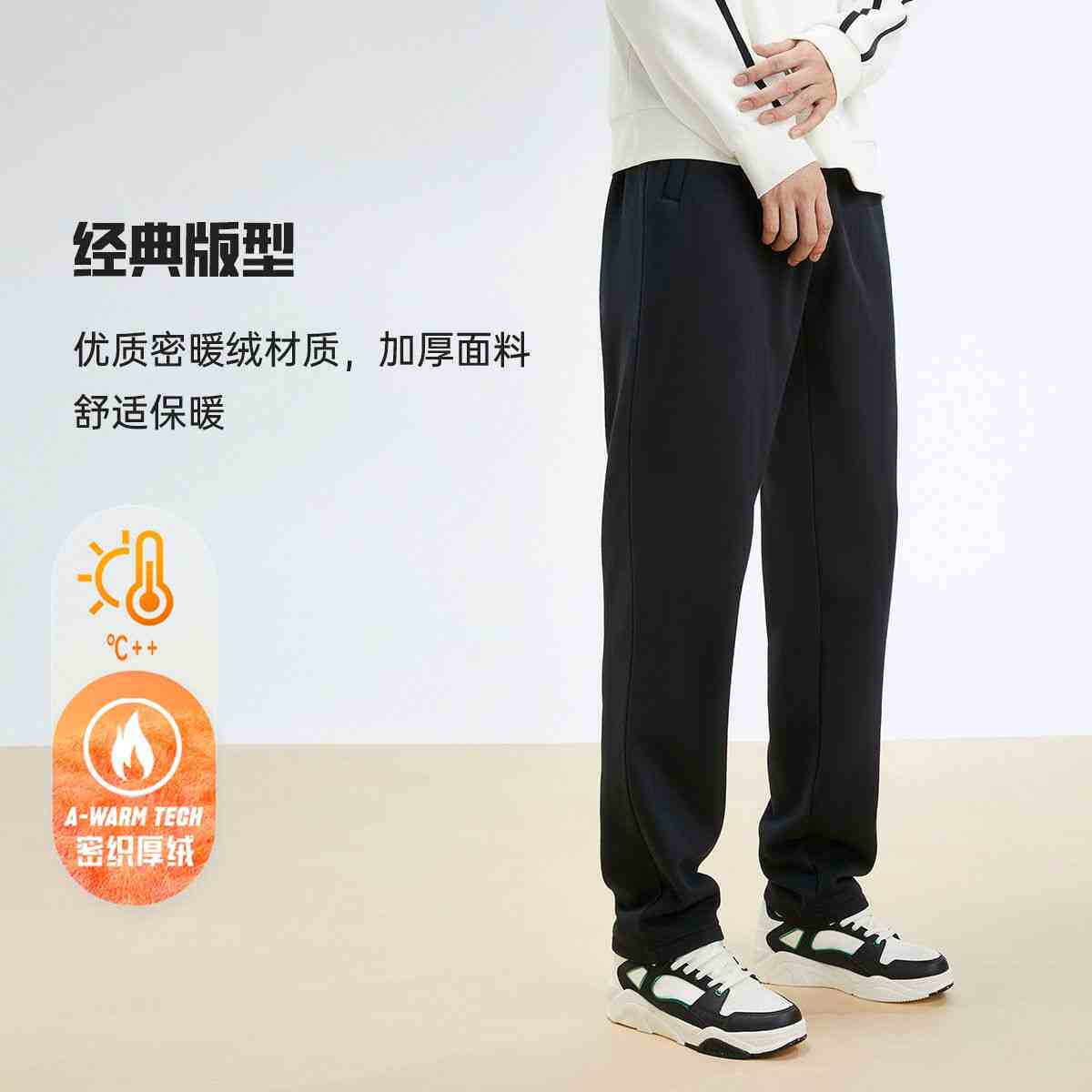 特步加绒卫裤男士加厚秋冬款裤子针织保暖裤直筒裤子休闲运动裤