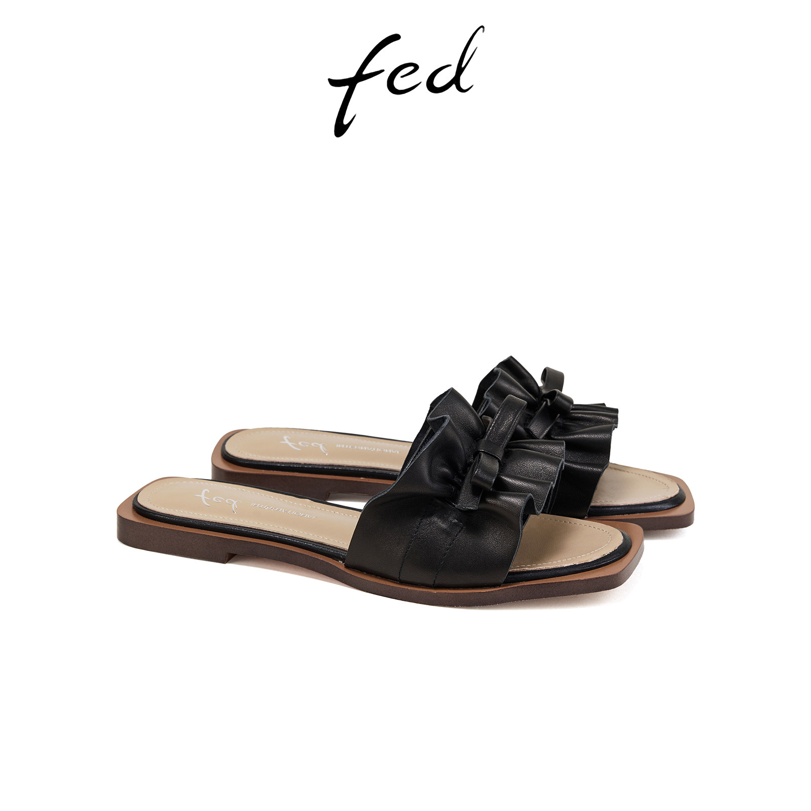 fed软底凉拖夏季新款女鞋黑色一字拖轻便懒人拖鞋女款S0519-YA703