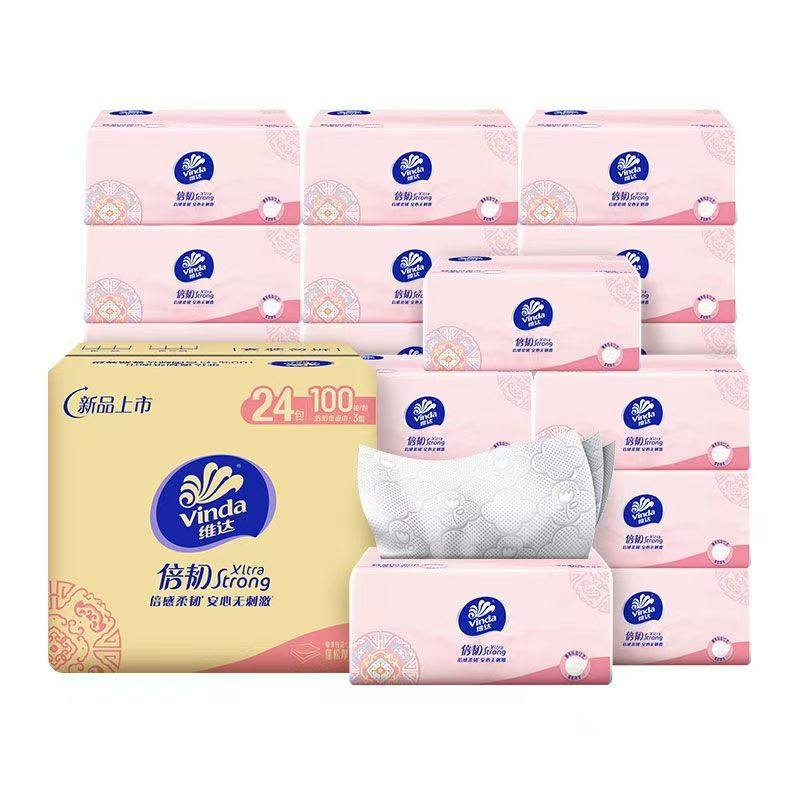 【百亿补贴臻选】维达抽纸棉韧立体美24包整箱家用实惠装卫生纸巾