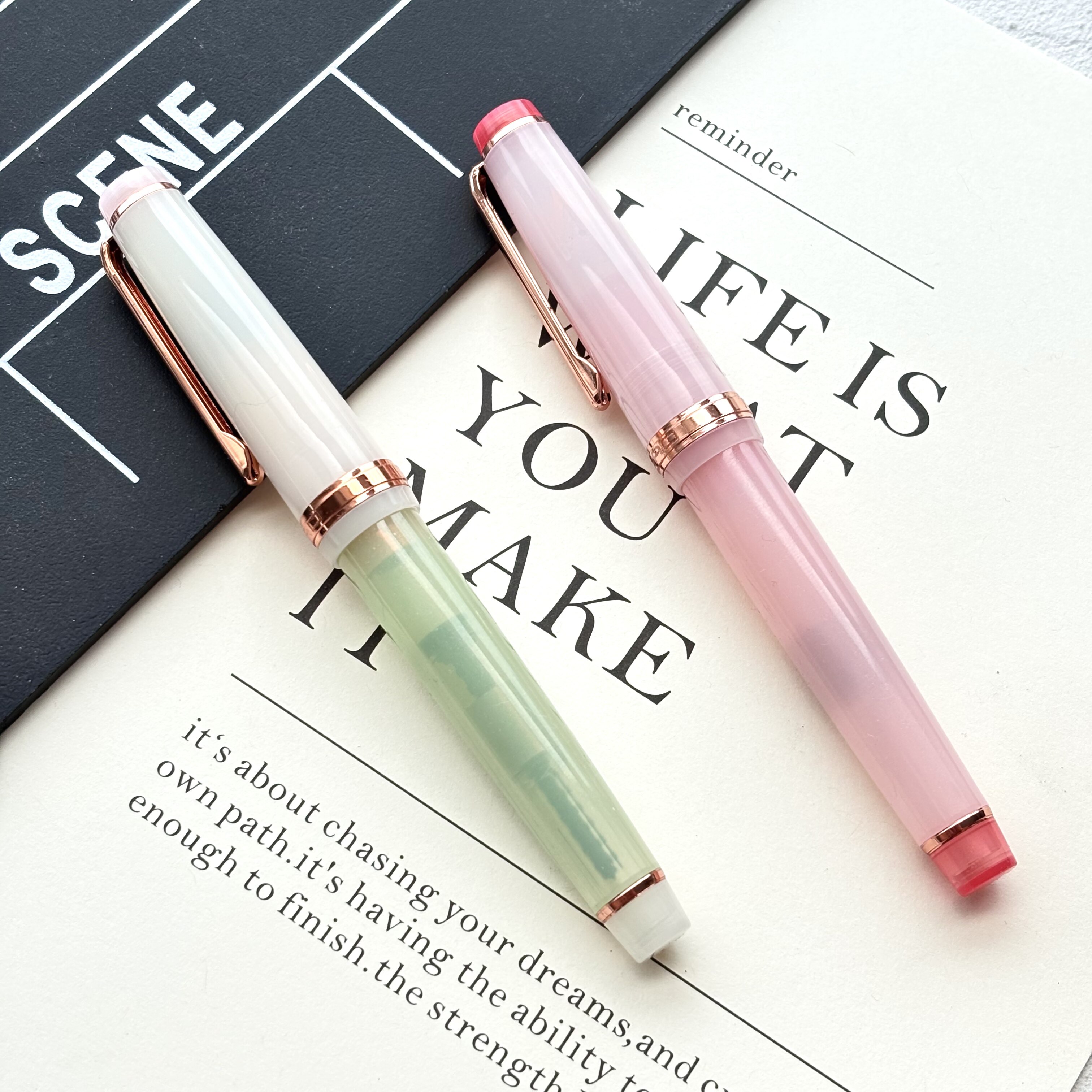 金豪82钢笔三色团子玫瑰金夹硬笔书法练字半透明拼色君子剑学生