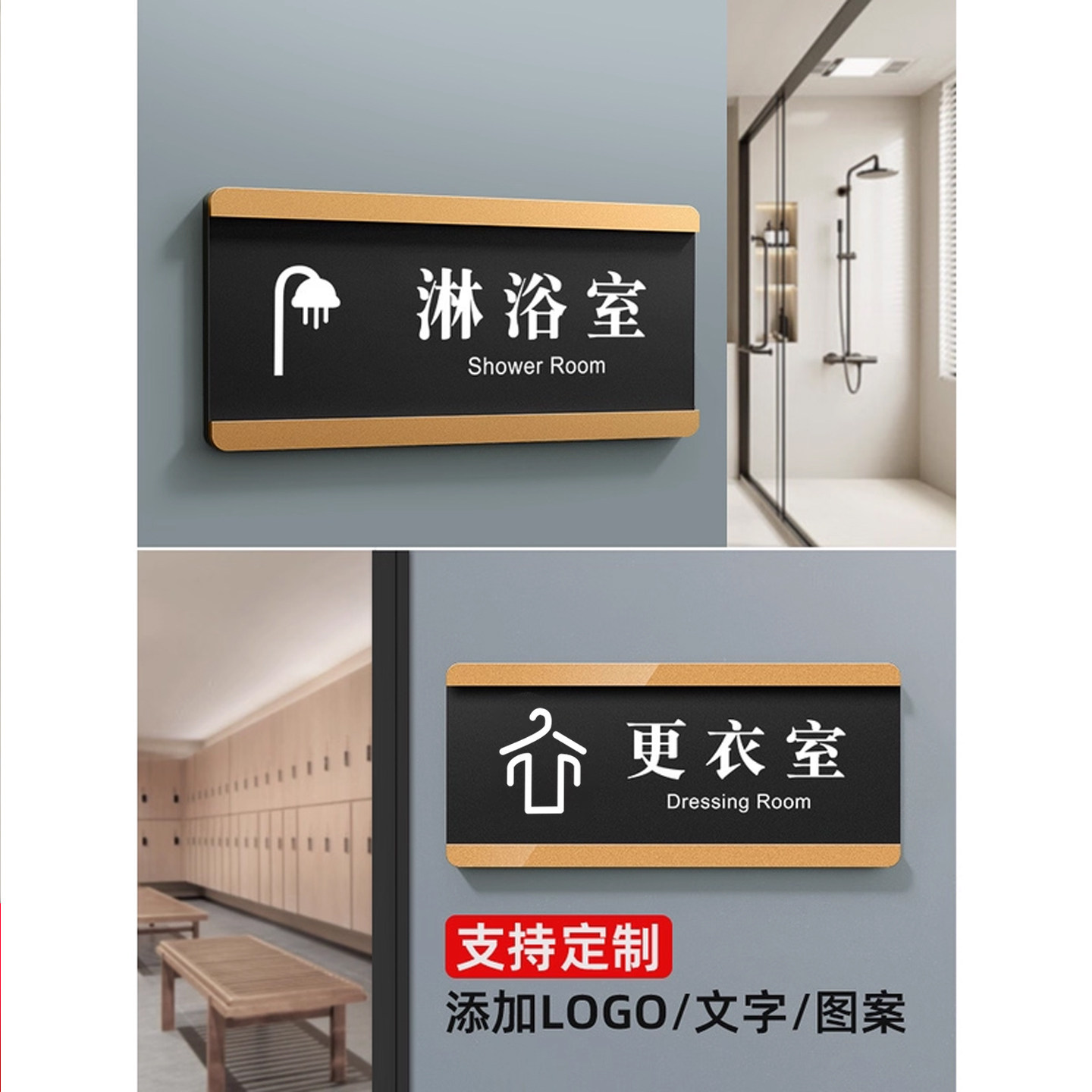 亚克力门牌淋浴室标识牌酒店洗浴桑拿房男女浴室标牌提示牌墙贴沐浴间更衣室标志牌美容房指示牌科室牌子定制