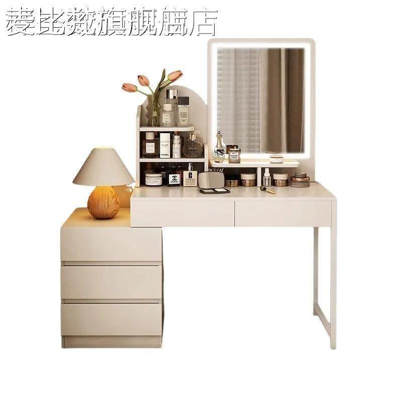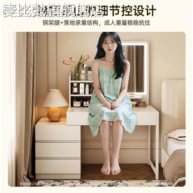 麦比梵实木化妆台化妆镜一体卧室现代简约小户型化妆桌收纳柜一体化妆台床笠拉车