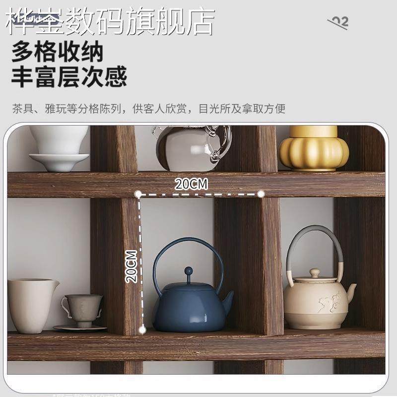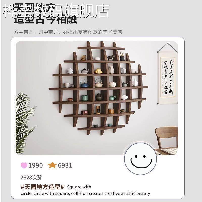麦比梵实木中式壁挂式圆博古架壁挂式书架格纹柜茶架茶具收纳架摆件饰品垫垫床笠拉车