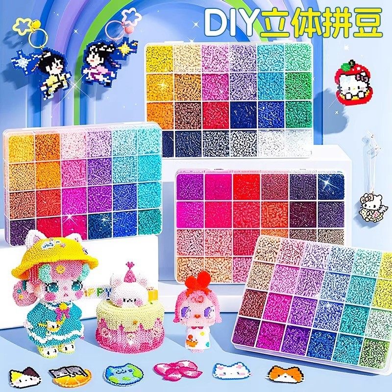 拼拼豆豆手工diy套装3d立体融合拼豆卡通拼图玩具男孩女孩6岁礼物