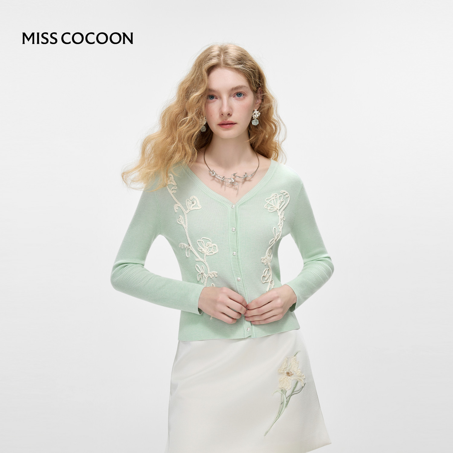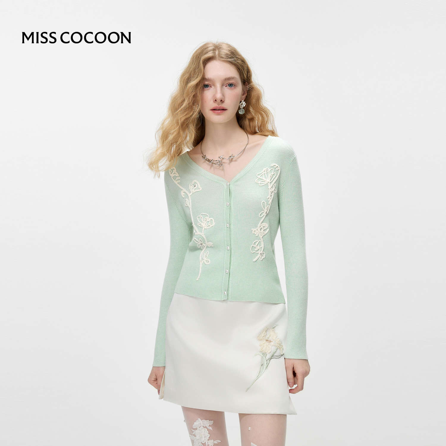 MISSCOCOON可可尼国风刺绣A字短裙女2026春季新款白色缎感半身裙