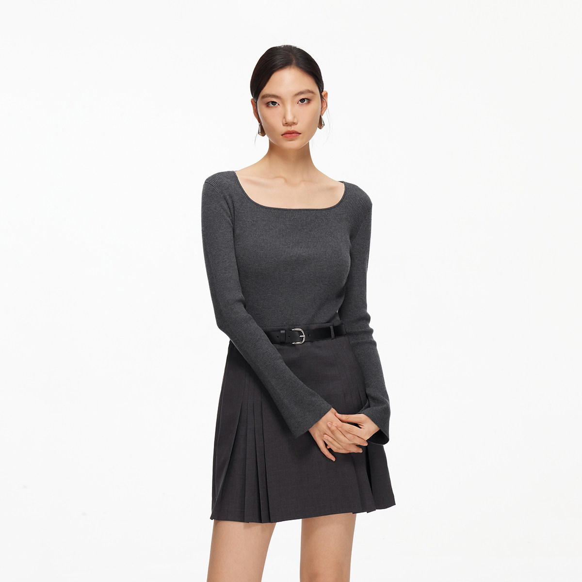 Vero Moda连衣裙2026春季新款含绵羊毛桑蚕丝腰带短裙326107001