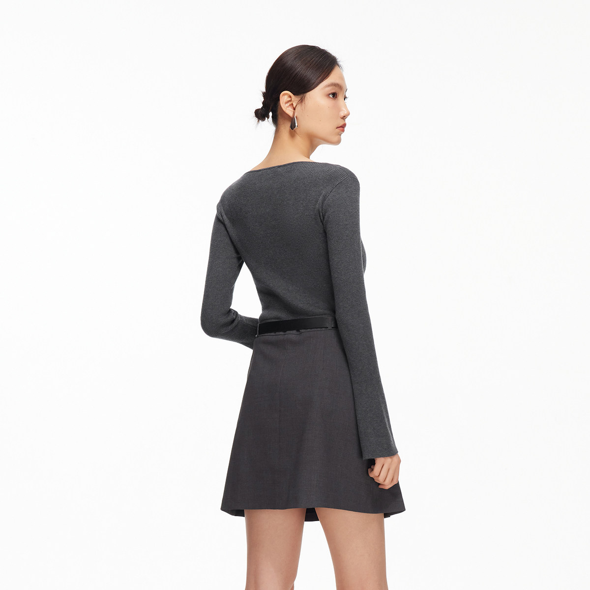 拼接短款连衣裙,优雅精致;上半身针织面料