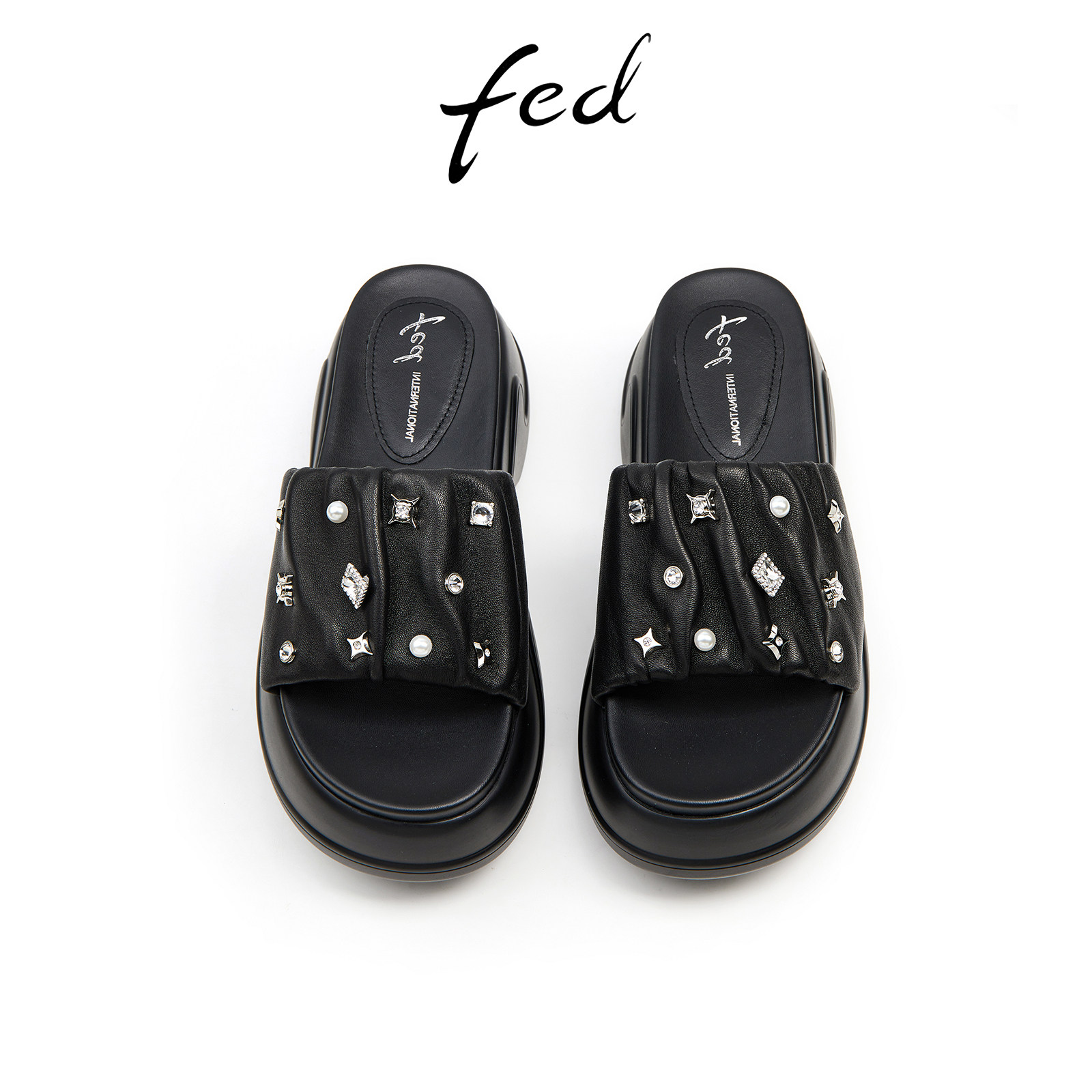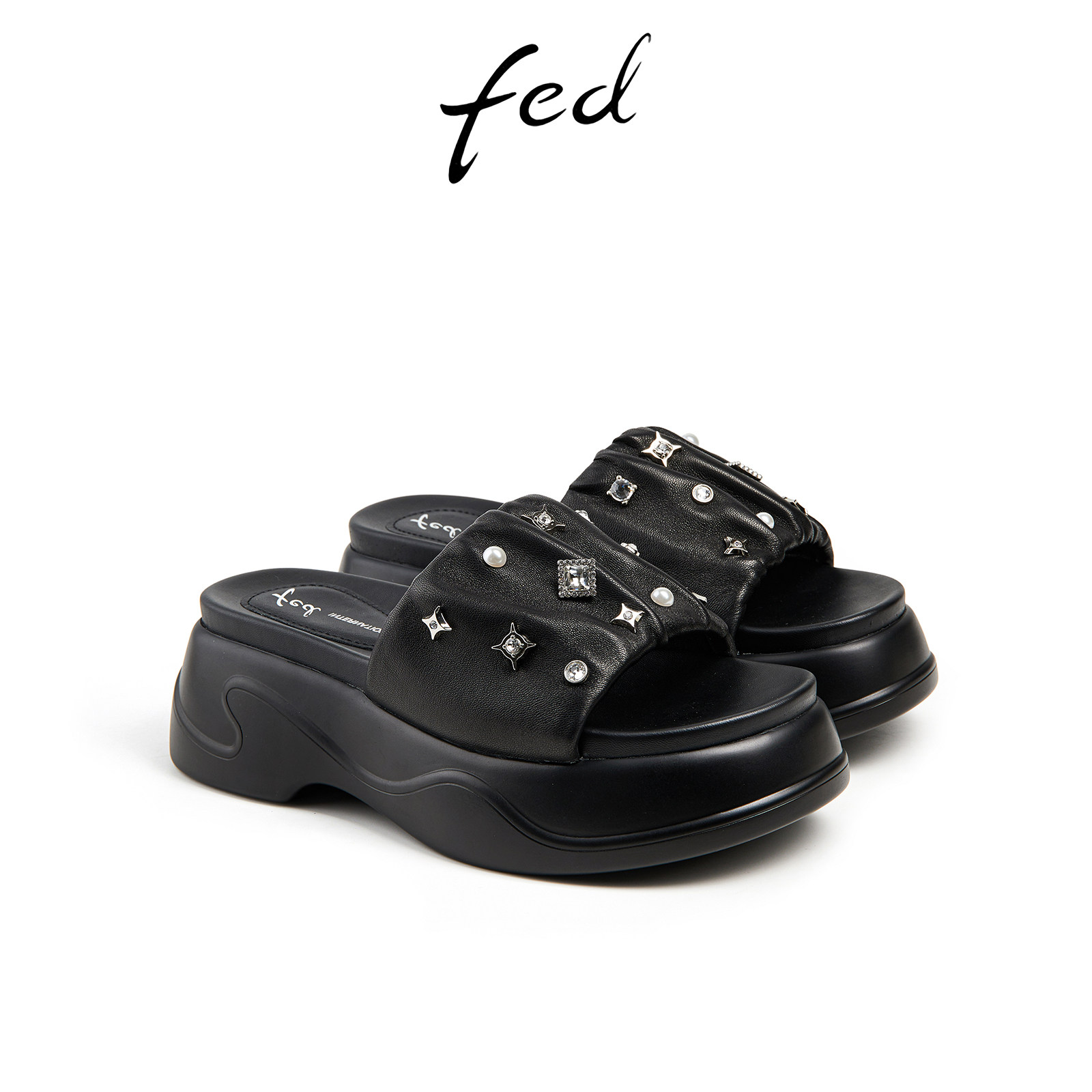 fed一字带凉拖鞋夏季新款女鞋厚底沙滩凉鞋外出拖鞋女D0610-YA870