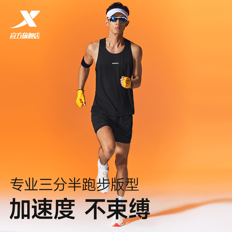 李宁跑步短裤男款速干马拉松田径运动三分裤夏季假两件带内衬健身