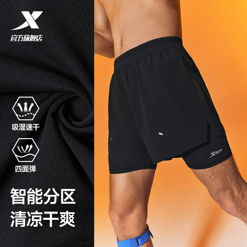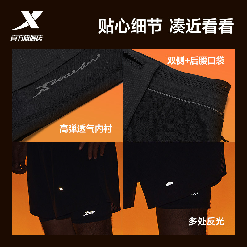 特步两千公里PRO丨短裤男士夏季新款跑步裤子2000公里假两件短裤