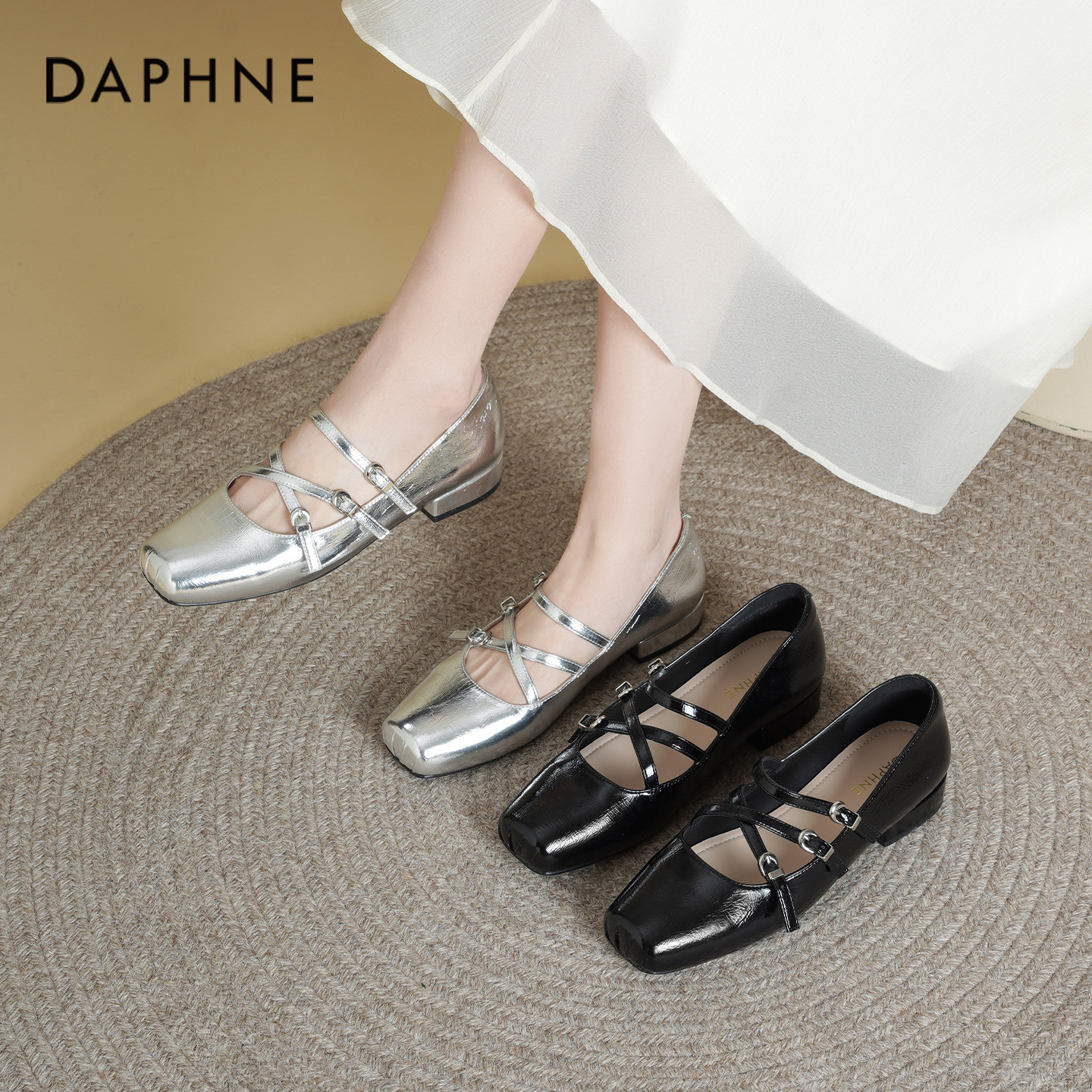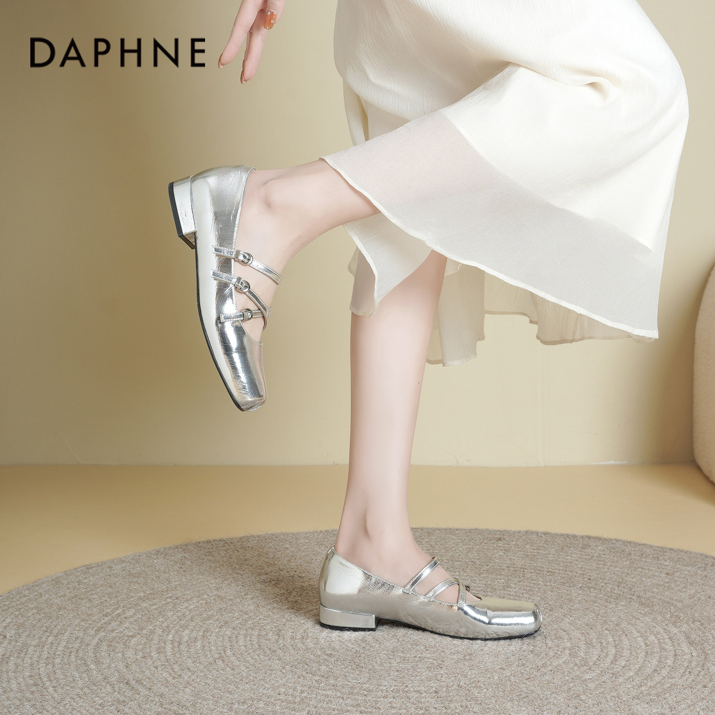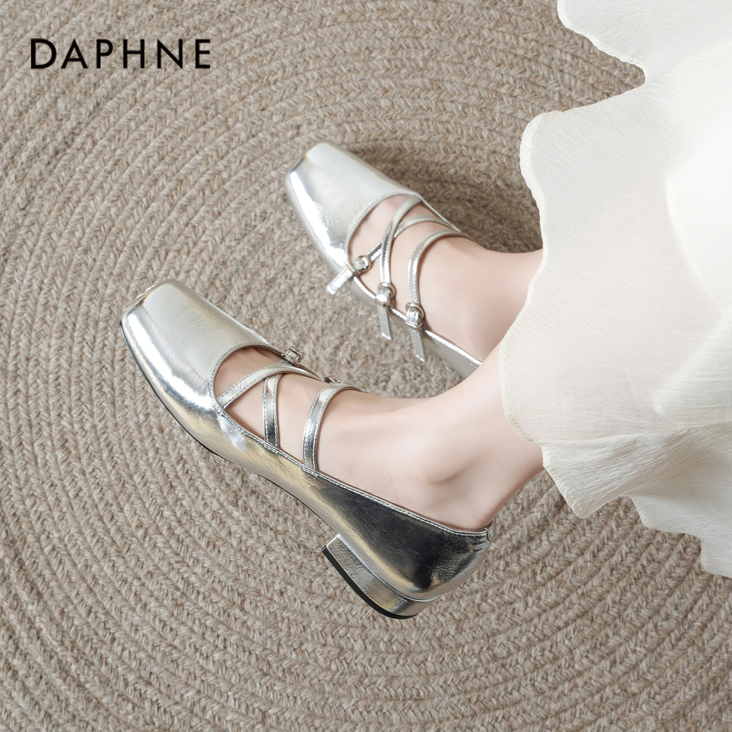 达芙妮银色单鞋女2026新款早春漂亮芭蕾舞鞋子粗跟法式玛丽珍女鞋