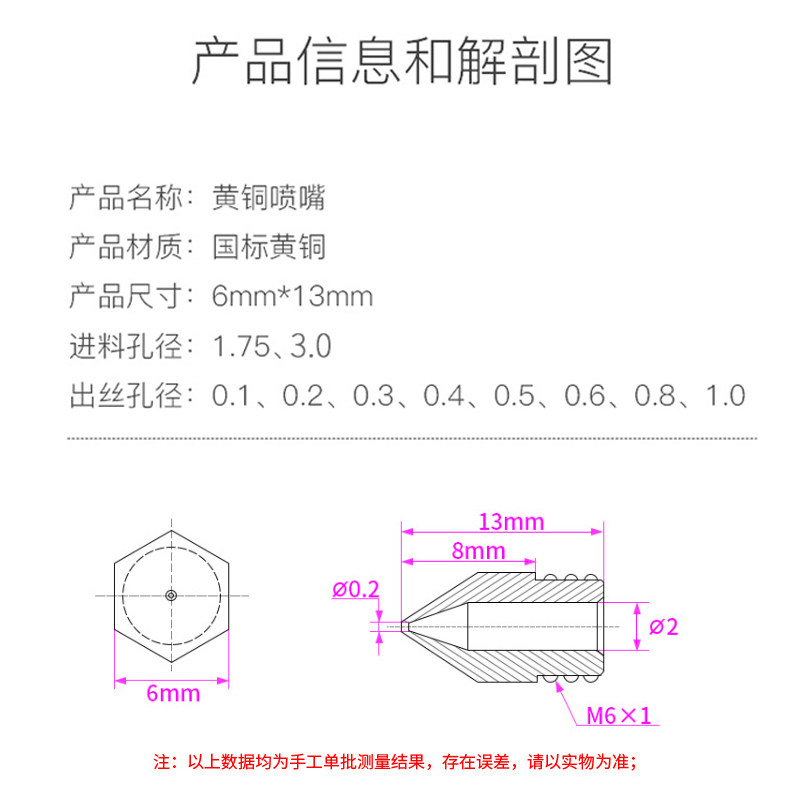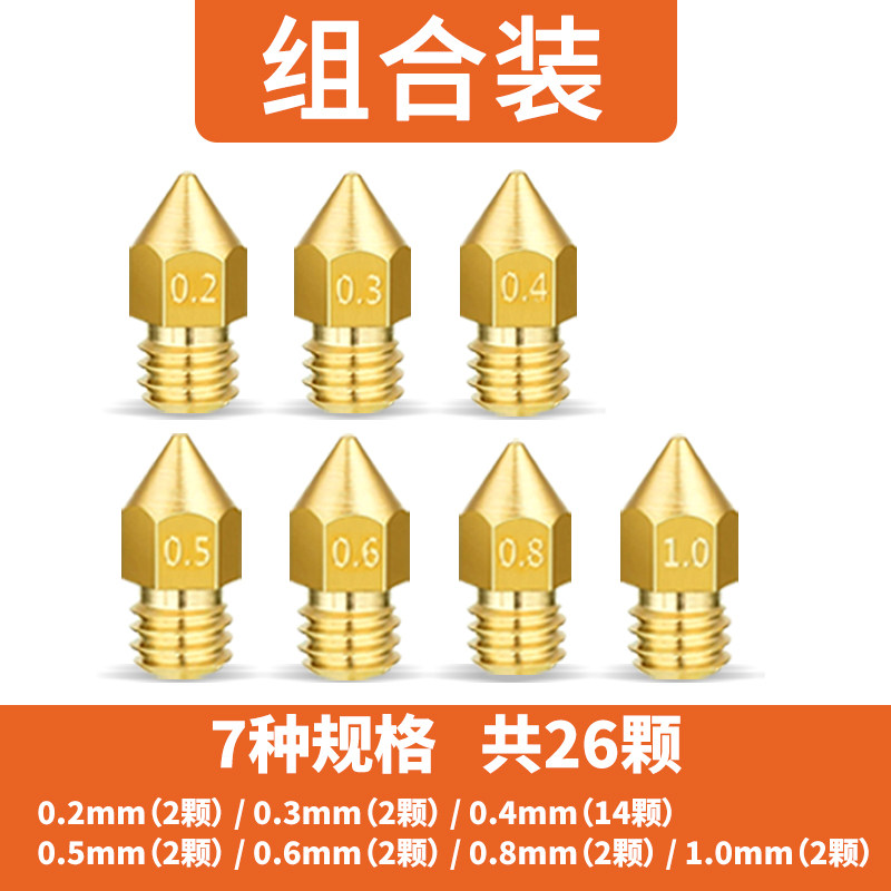 彩格 3D打印机配件MK8挤出头喷嘴1.75黄铜喷头 金属挤出机打印头 1.75/3.0耗材黄铜喷嘴
