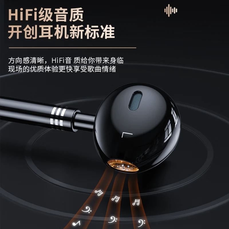 小音享有线耳机入耳式typec接口圆孔适用于小米华为苹果台式电脑