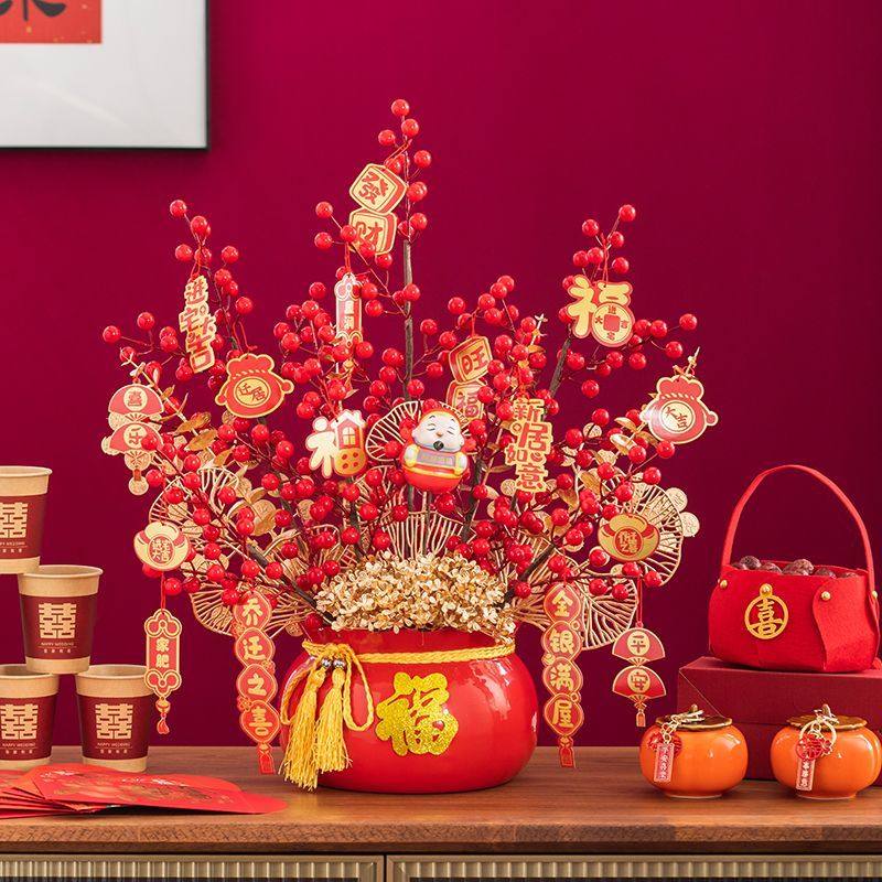 年宵花新年抱抱桶装饰花红果发财果客厅摆设乔迁搬家礼物新居摆件