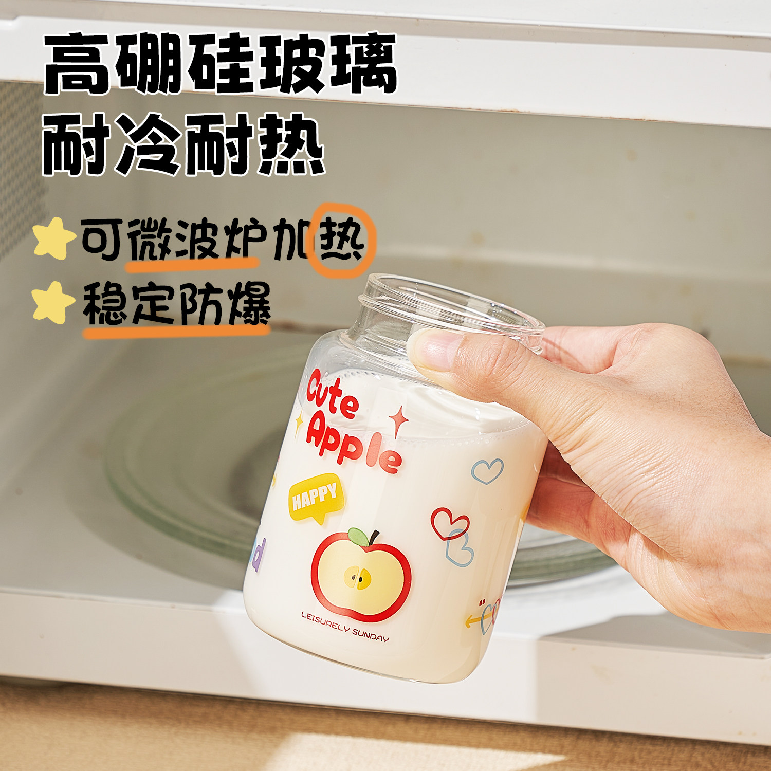 高颜值玻璃杯2025牛奶杯微波炉可加热胖胖杯耐高温豆浆杯外带便携