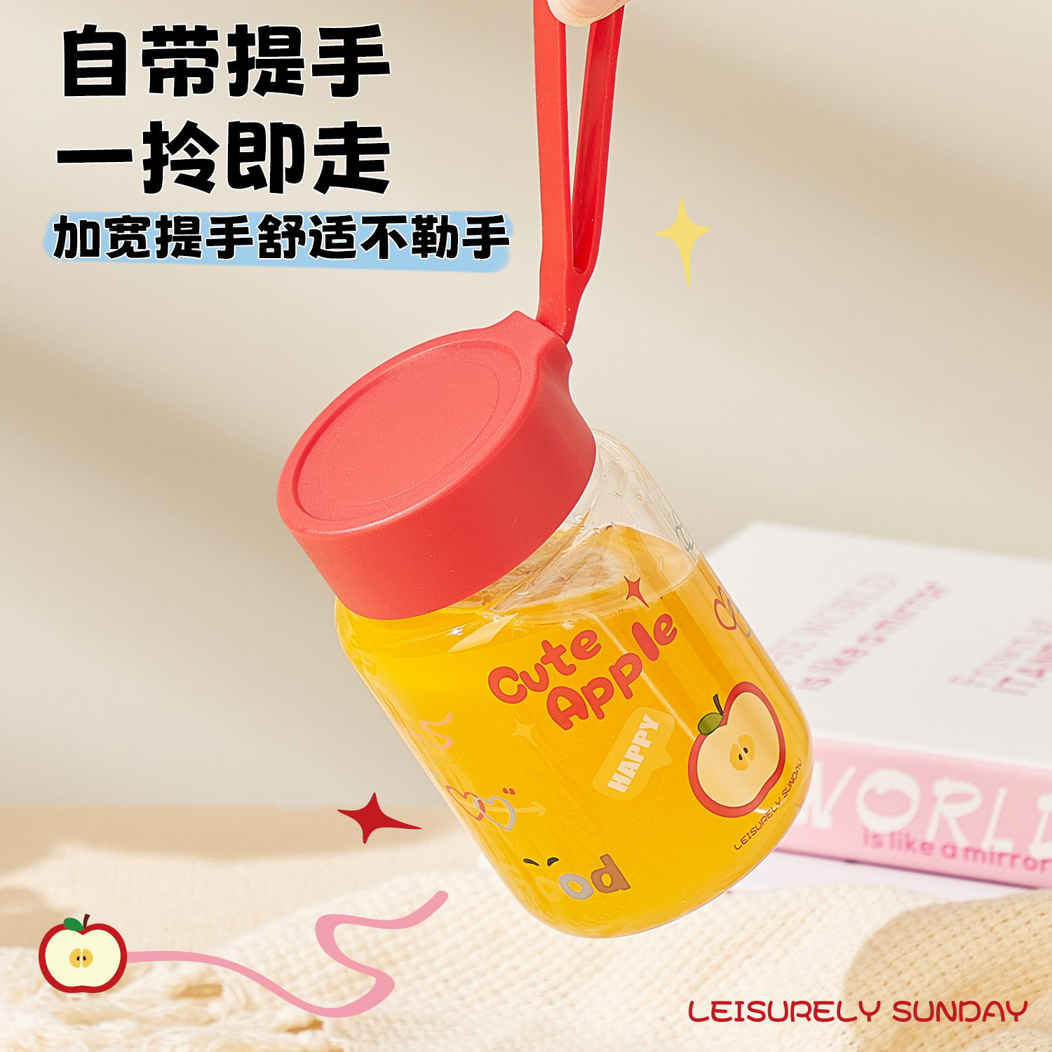 可爱卡通玻璃杯大容量水杯2024新款女杯子办公室家用牛奶杯奶茶杯