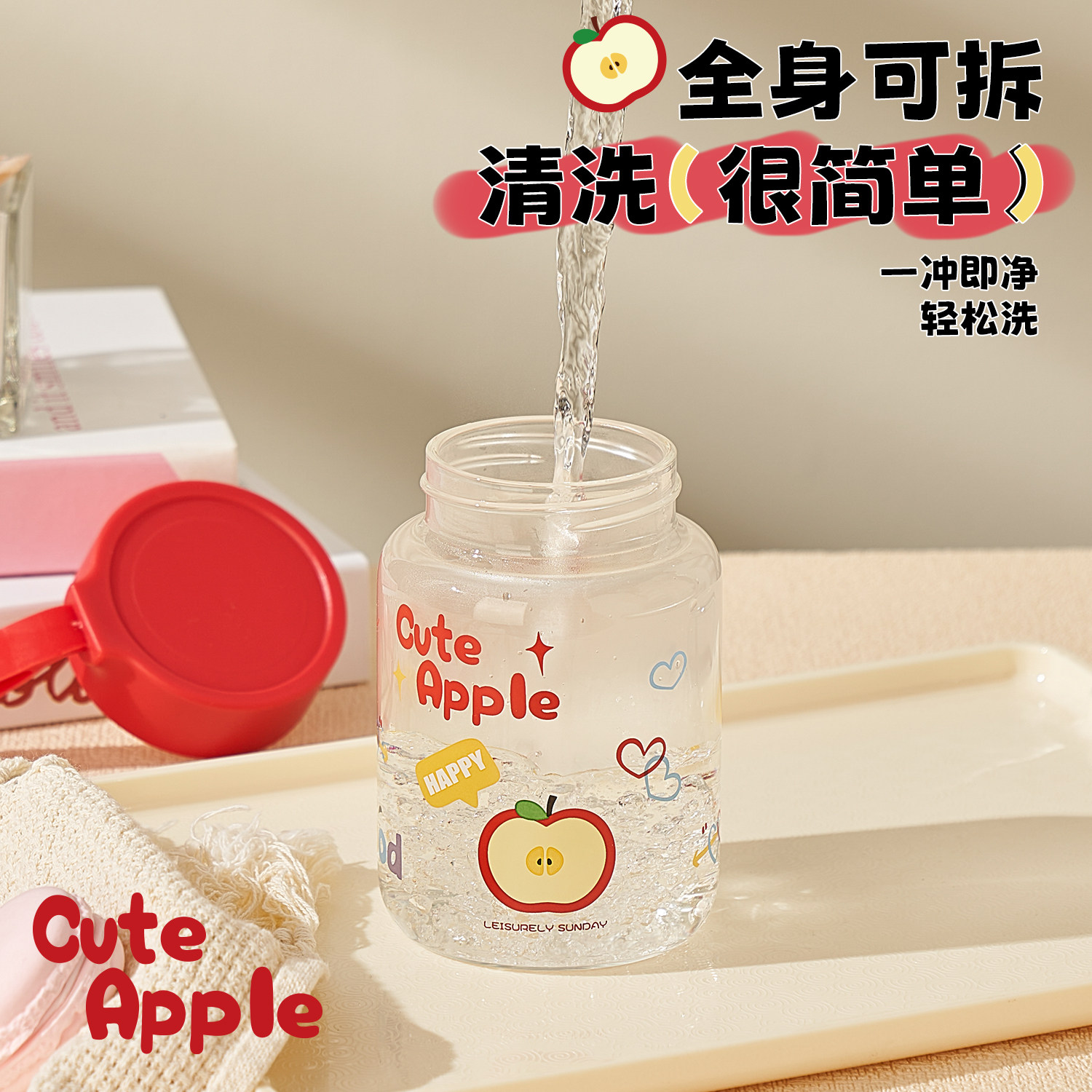 玻璃杯大容量1000ml高硼硅泡茶杯女办公室家用喝水杯子吸管杯新款