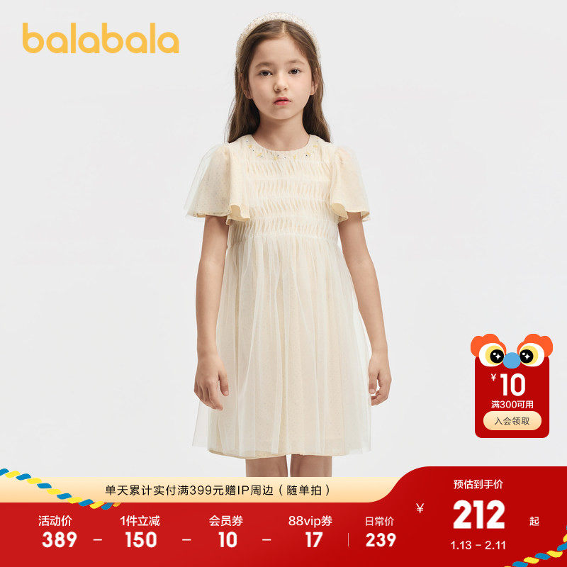 【balaOne】巴拉巴拉童装女童连衣裙2025新款春装网纱裙甜美洋气