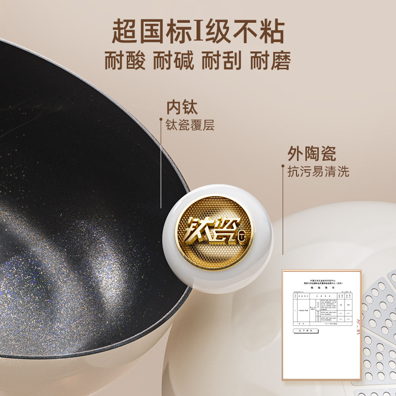 爱仕达陶瓷不粘锅炒锅无氟炒菜锅平底电磁炉用钛锅电磁炉燃气灶锅