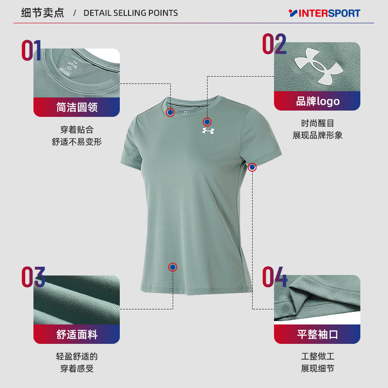 安德玛速干T恤女2025秋季新款女装休闲短袖官方健身训练运动上衣
