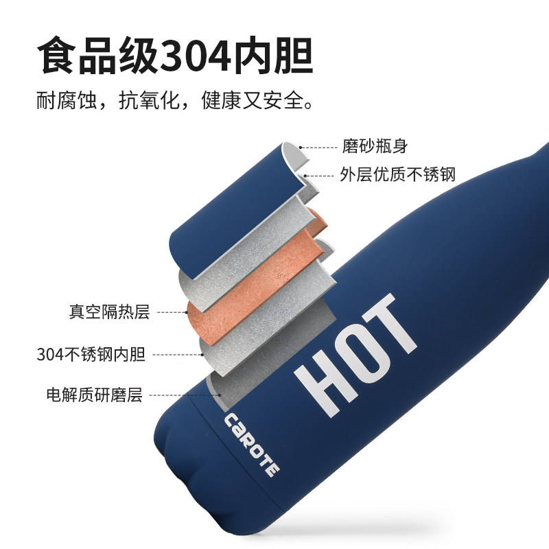 卡罗特保温杯大容量女高颜值便携简约水杯男士不锈钢杯子学生专用