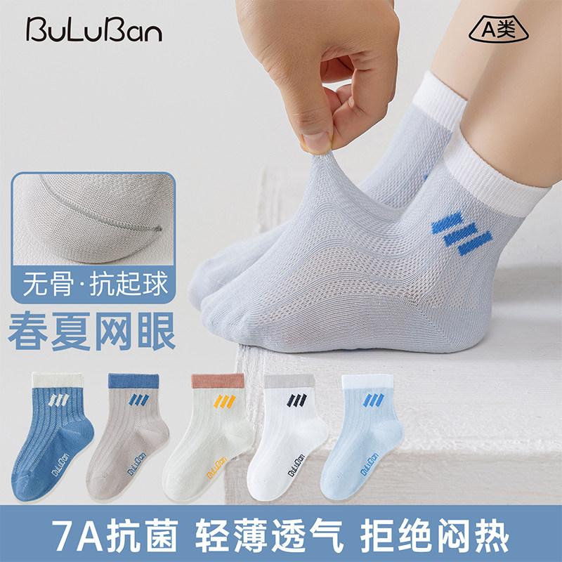 春夏棉袜薄款网眼7A抗菌防臭无骨抗起球男女儿童袜子透气中筒袜子