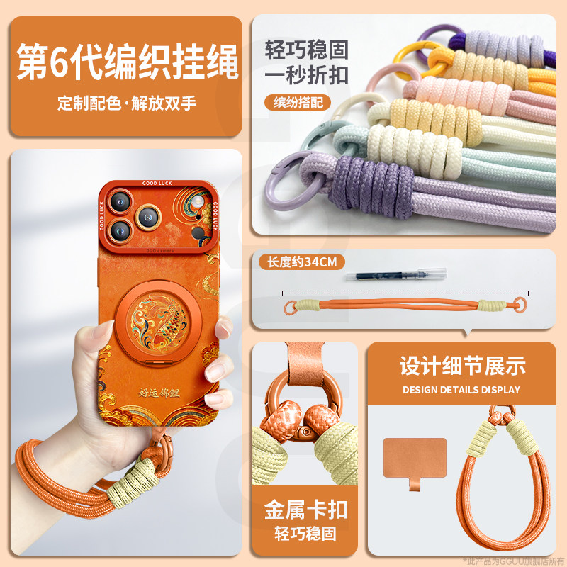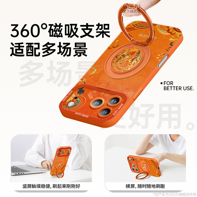 好运锦鲤适用苹果17promax手机壳iPhone17保护套17pro斜挎新款可背16腕带磁吸支架pro硅胶15女14挂绳橙色马年