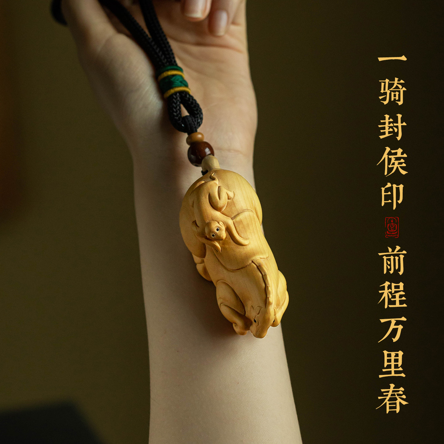 大善堂黄杨木生肖马手把件马上封侯手把件创意摆件挂件随身盘玩