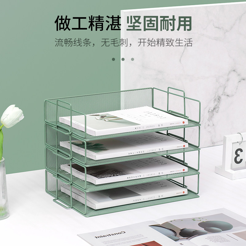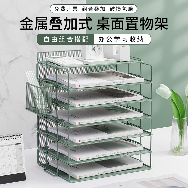 文件架金属文件框办公桌面收纳架铁质多层文件夹架收纳盒书架文件办公室书立档案架办公文具用品大全资料架子