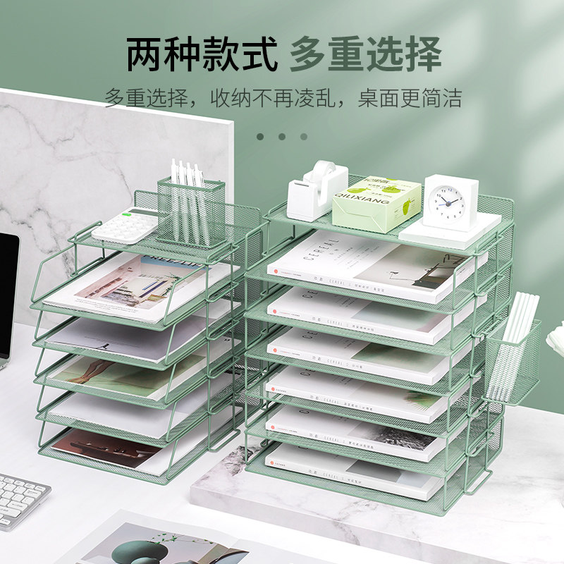 金属文件框文件架铁质多层文件夹架收纳盒立式办公桌书架文件筐桌面文具资料收纳置物架子书立办公用品大全