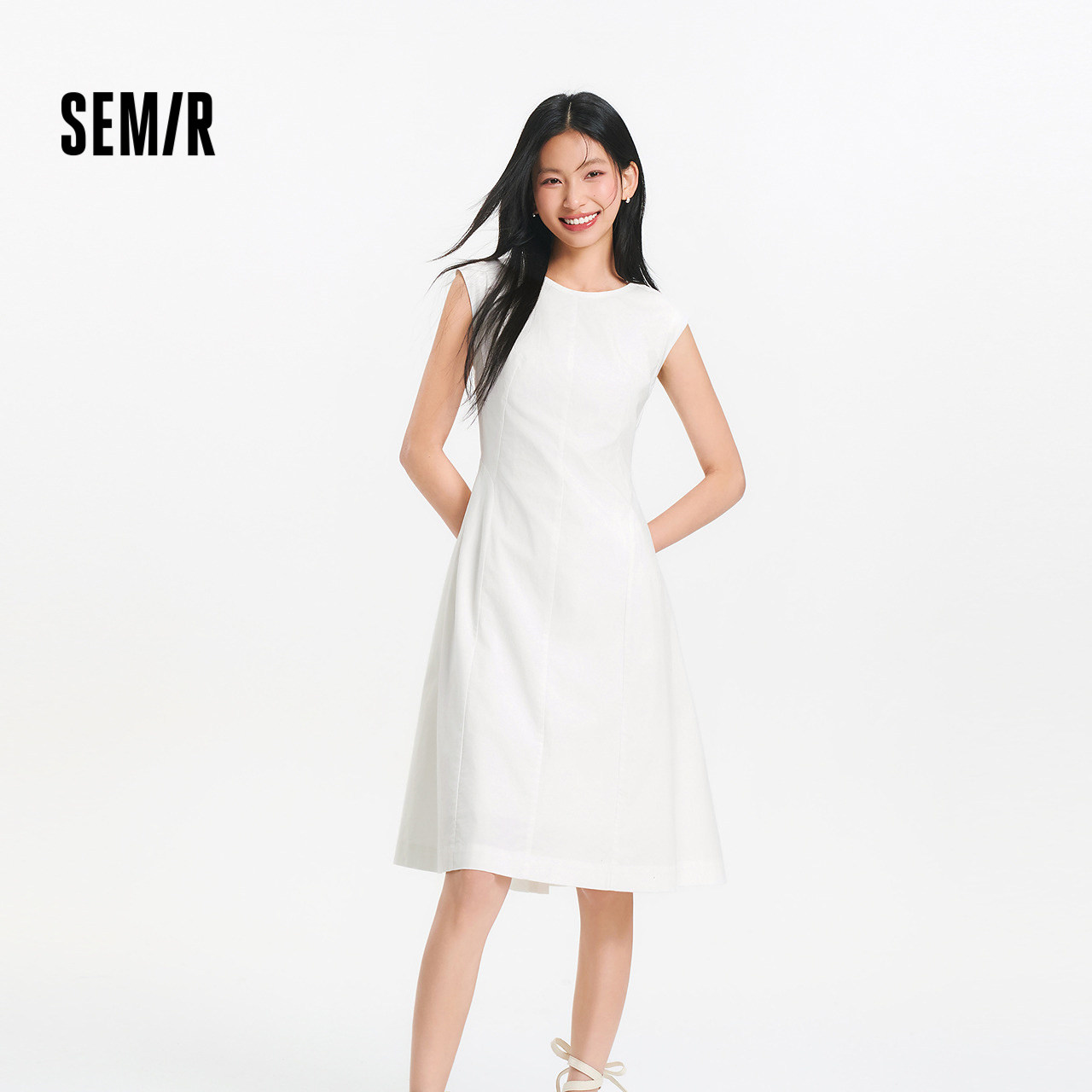 森马连衣裙女夏季圆领纯色无袖小黑裙气质简约时尚通勤百搭背心裙