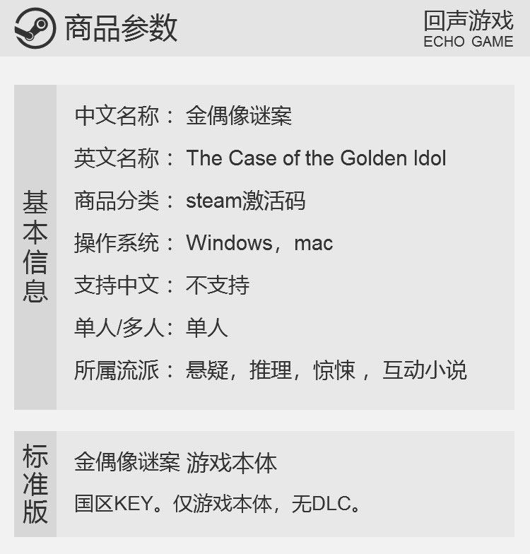 Steam 正版 国区k 金偶像谜案 The Case of the Golden Idol 悬疑