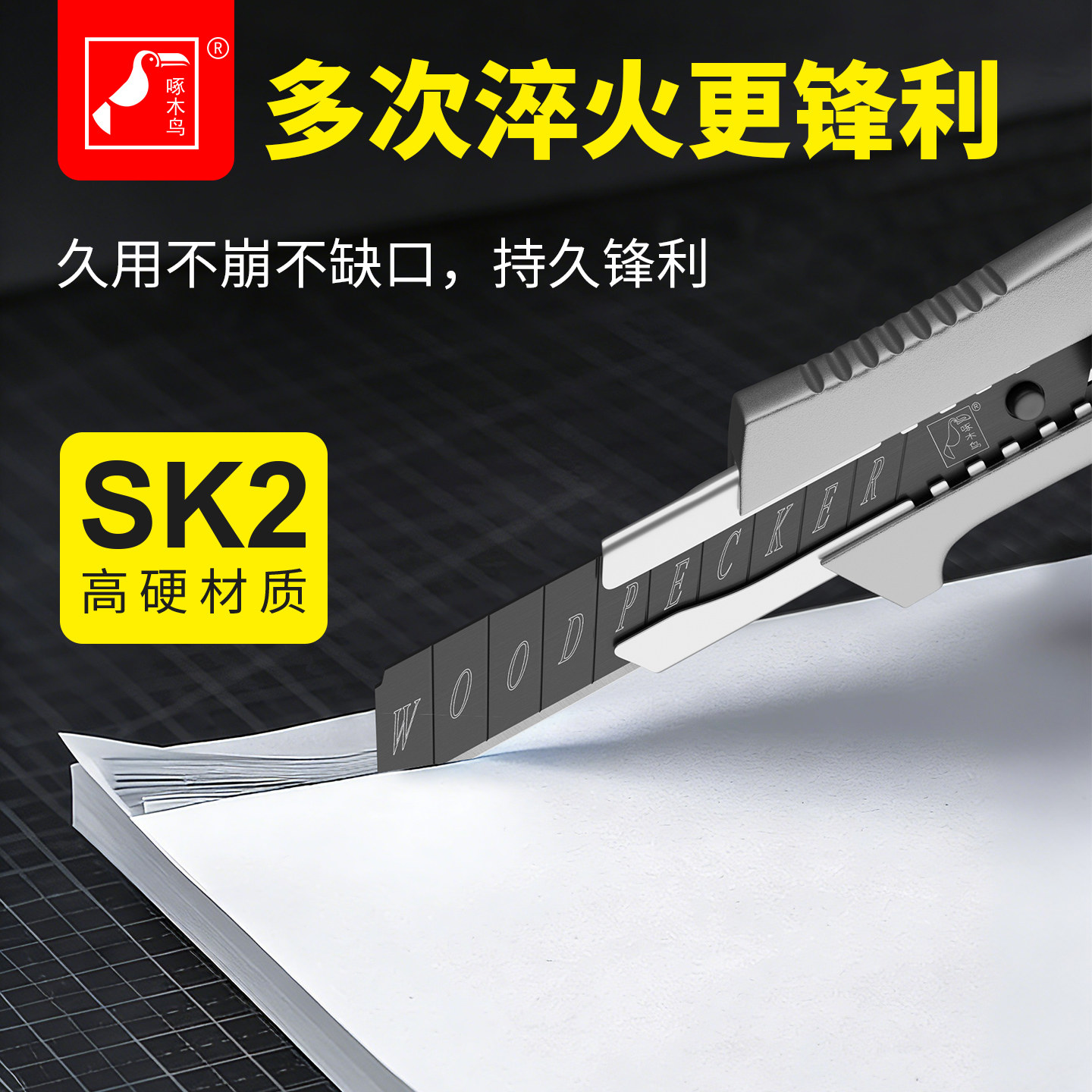 啄木鸟刀片美工刀SK2加厚高硬度大号18mm裁纸刀壁纸刀片黑刃墙纸刀工业用多用途锋利耐用美缝家装拆箱拆快递