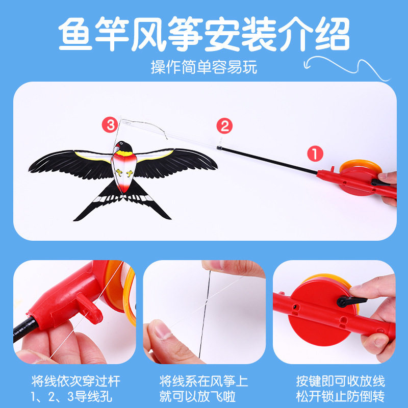儿童新款风筝高颜值手持动态鱼竿小风筝微风易飞学生风筝摆摊