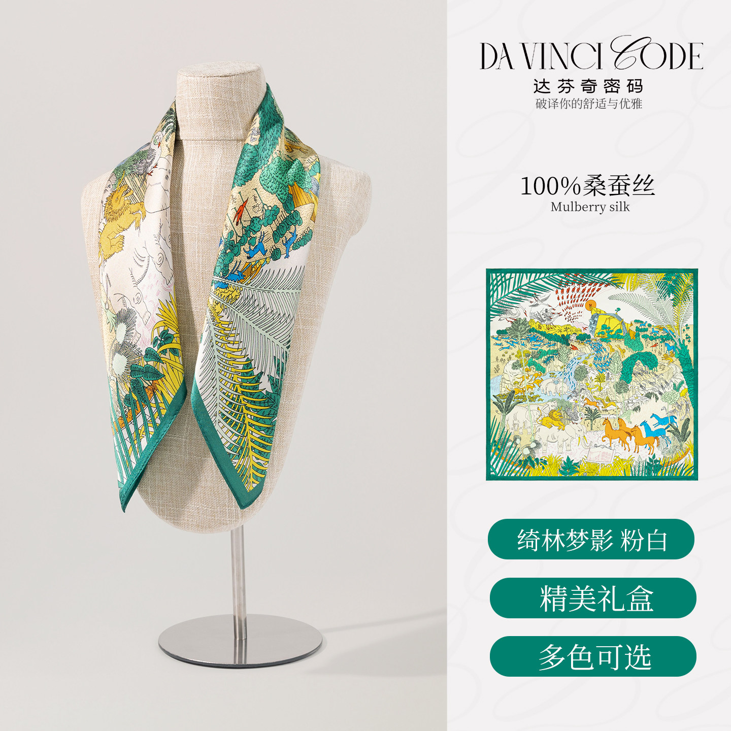 达芬奇密码真丝丝巾桑蚕丝方巾系脖女夏天护颈妈妈围巾教师节礼物